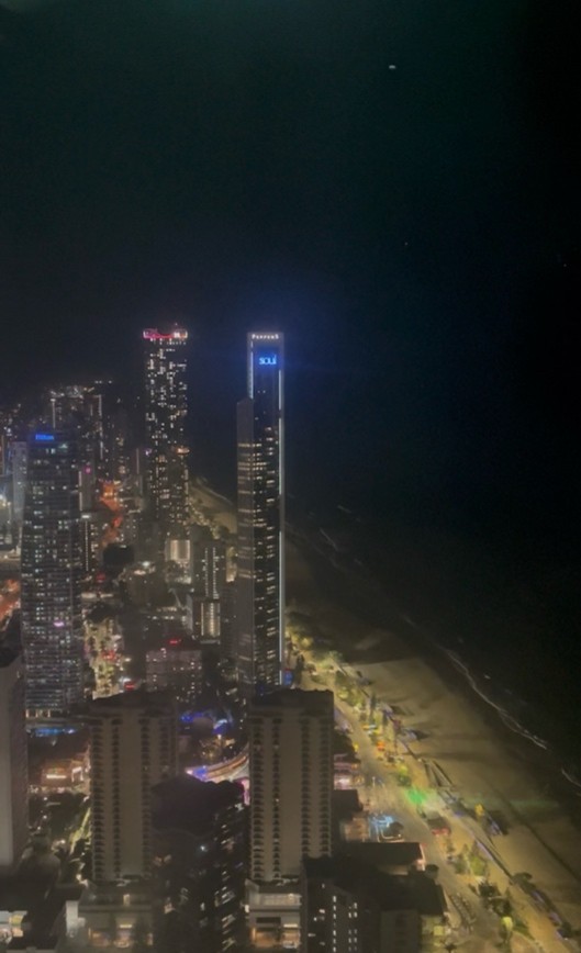 滞在中にはサーファーズパラダイスのビーチにも訪れた。そこは日本の海とは全く違う美しさで、とても圧倒された。日本の海と比べてゴミが少なく、非常にきれいに保たれていたことが印象的だった。実際にホストファザーと朝日を見にビーチに行った際には、ビーチに落ちているゴミを拾っており、地域の人々が協力して美しい環境を守っているのだと感じた。