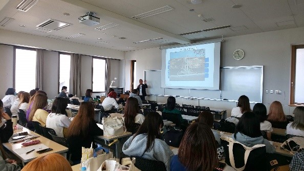 5月19日(金)の「ビジネス・インターンシップⅠ」の授業で、マイナビの川村様にインターンシップの事前研修として、「インターンシップの現状と受入先企業の見つけ方」をテーマにお話しいただきました。インターンシップには学校経由のものと自由応募のものがあること、自由応募するにはどうしたらよいかなどを教えていただきました。また、今年度から、学生のキャリア形成支援活動が4つの類型に分けられ、企業が「インターンシップ」を通じて取得した学生情報を採用活動に段階的に活用できるようになることなど、インターンシップと就職活動に関する気になる情報もご提供いただきました。さらに、留学予定者が多いグローバル・スタディーズ学科の学生のために、留学と就職を成功させるポイントについてもお話しいただきました。