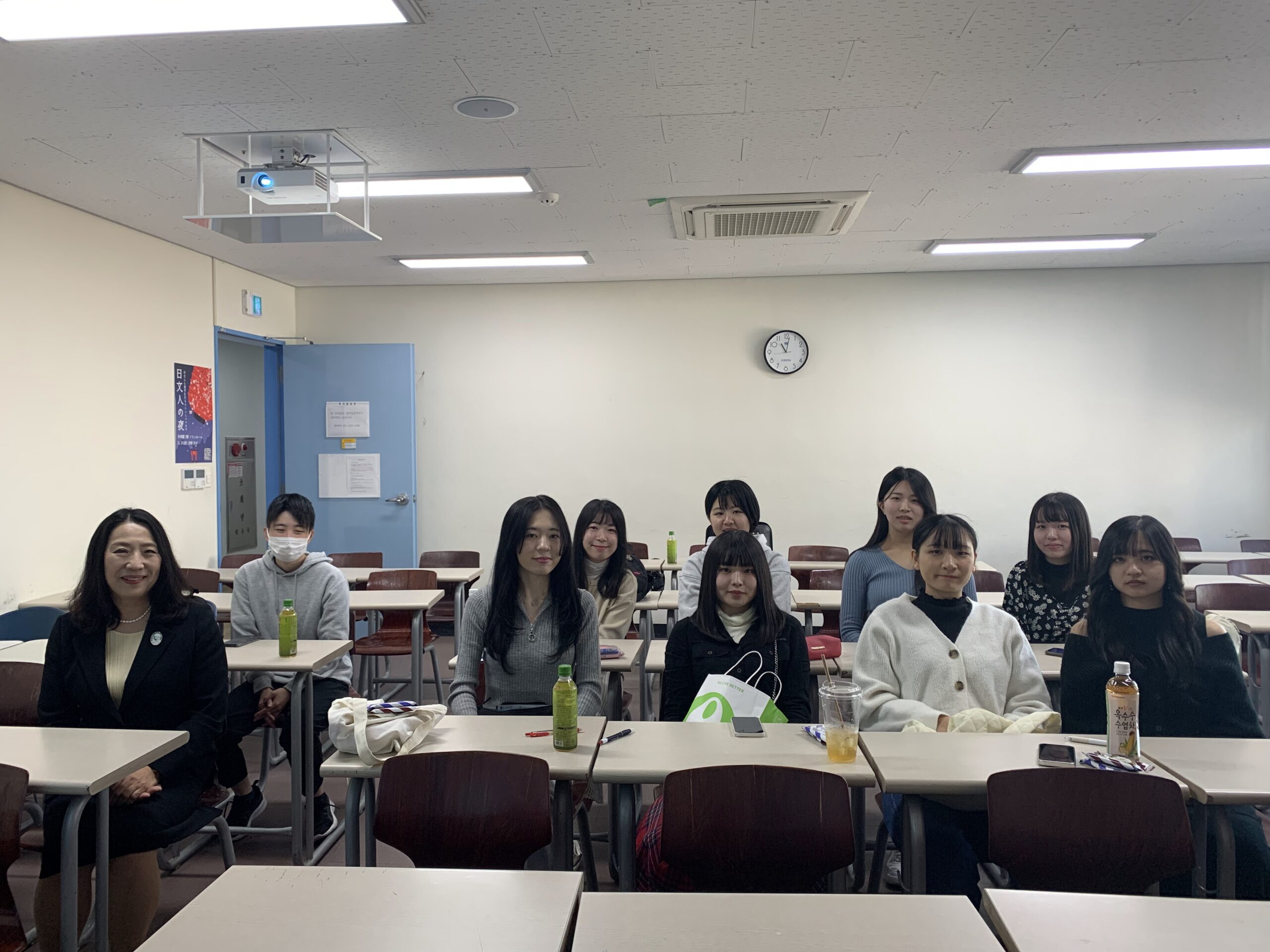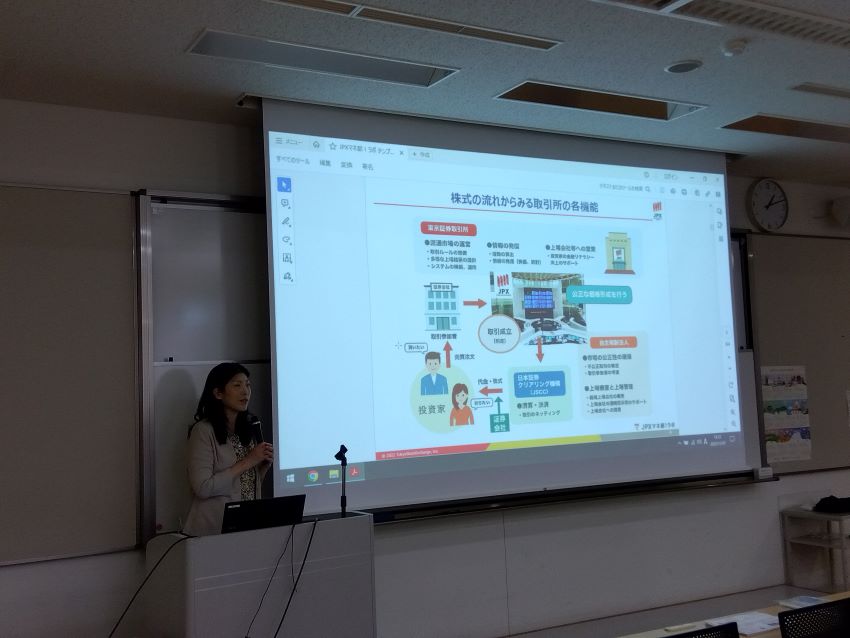 11月7日(火)3限の「グローバル・スタディーズ総合演習Ⅱ」の授業では、小形ゼミ・賈ゼミ・加藤ゼミ・山田ゼミの合同で、東京証券取引所金融リテラシーサポート部課長の杉山佳子様をお招きし、「人生100年時代の女性のキャリアとライフプランにおけるお金の活かし方」に関するセミナーを実施しました。