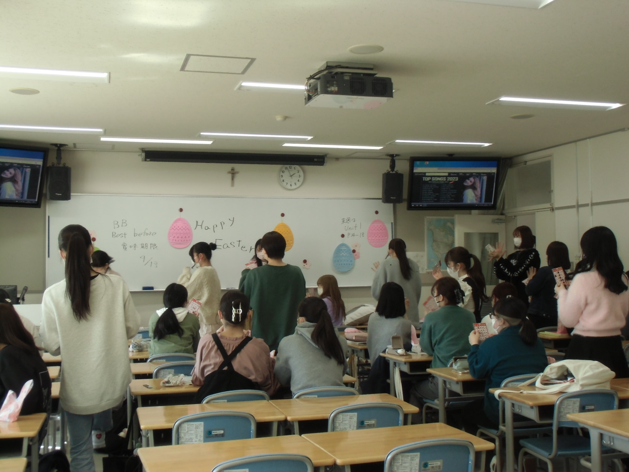 Happy Easter! 2023年4月10日2023年4月10日GS Spread the love4月10日、English ⅠA(1年生必修英語)の授業でイースターエッグのデコレーションと英語でビンゴゲームをしました。 共有: クリックして X で共有 (新しいウィンドウで開きます) X Facebook で共有するにはクリックしてください (新しいウィンドウで開きます) Facebook クリックして Pinterest で共有 (新しいウィンドウで開きます) Pinterest