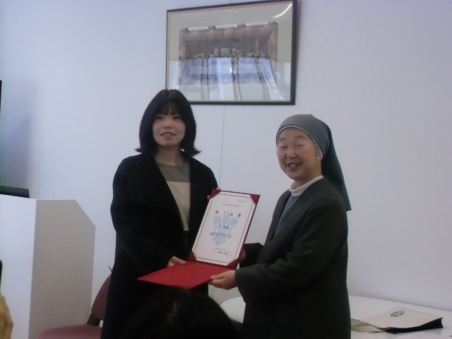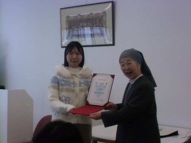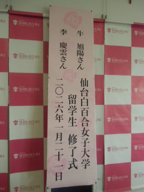 留学生修了式 2026年1月22日GS Spread the love1月21日、中国からの2名の留学生 李慶雲(りー ちーんゆいん)さんと牛旭陽(ぎゅう きょくよう)さんの修了式が行われました。 修了証書授与のあと、半年間の思い出について2人からスライドを使っての発表がありました。 共有: クリックして X で共有 (新しいウィンドウで開きます) X Facebook で共有するにはクリックしてください (新しいウィンドウで開きます) Facebook クリックして Pinterest で共有 (新しいウィンドウで開きます) Pinterest